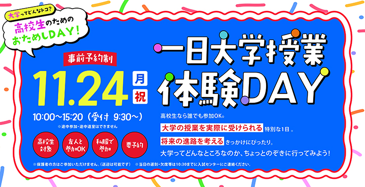 ※参加には予約が必要です。詳しくはオープンキャンパスのページにてご確認ください。