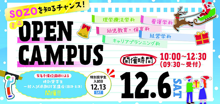 12月6日(土)はオープンキャンパス を開催します! 12月のオープンキャンパスでは、高校1・2年生向けに学科独自のプログラムを実施します。経営学部における学びの特...